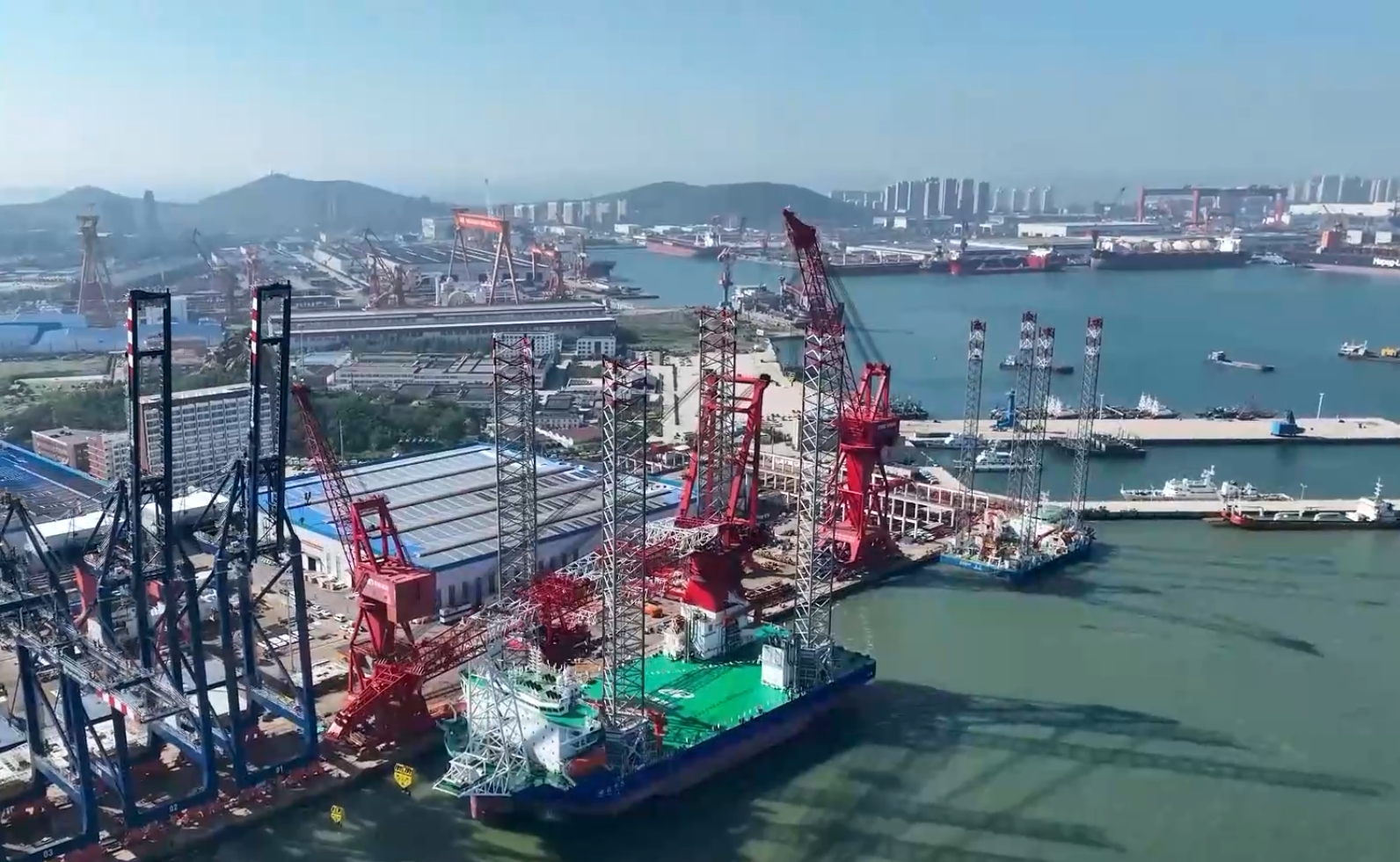 8月28日,目前国内起升高度最高、综合起重能力最强、升降桩腿最长的自航自升式海上风电安装平台“港航平5”在青岛海西重机码头顺利交付。