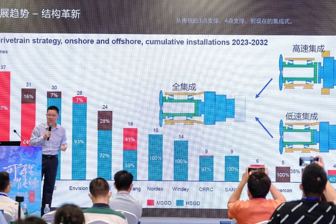 近年来,海陆风机采用双馈或中速永磁(带齿轮箱传动链)技术路线被认为是未来行业主流。在此背景下,以主轴系统、齿轮箱为主体的传动链是否高效可靠,早已成为衡量风机产品力优劣的重要标尺。历史上全球主流传动链大多采用三点支撑、四点支撑结构。早在2022年,基于对风电技术本质的全面理解和对市场诉求的深刻洞察,远景先人一步,在传动结构设计方面实现突破性创新,成功开发出中国首个原生态低速集成式高速双馈大兆瓦传动链,撬动新一代传动链技术变革:截至目前,低速集成传动链技术已在远景Model T陆上机组成功运行近2年,高速集成传动链技术也已在远景Model Z海上机组得到充分验证,在低速和高速独立集成方案的成功经验上,远景的全集成传动链技术逐步迈向成熟并推向市场。