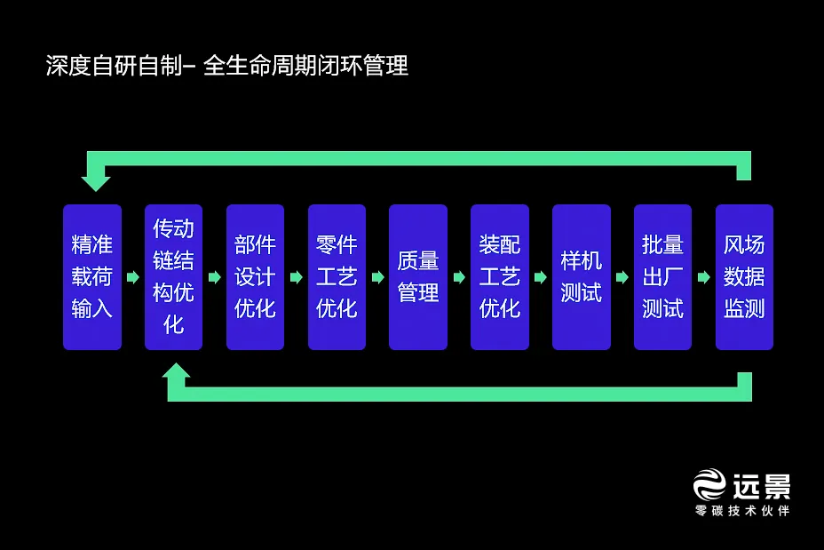 专注风机深度制造近20年,远景坚守长期主义理念,坚持做难而正确的事,交付客户的每一款新型传动链必须100%完成从原材料到部件、系统,再到整机和风场的全流程、多层级、全工况测试验证,保证产品质量可靠性,持续引领行业理性前行。