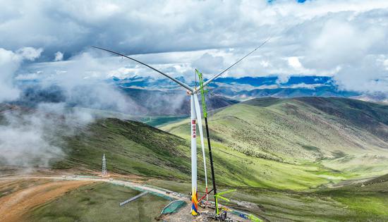 世界最高海拔风电项目首台风机吊装完成。宋先吉 摄