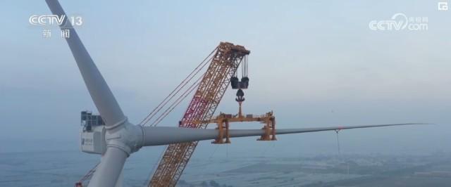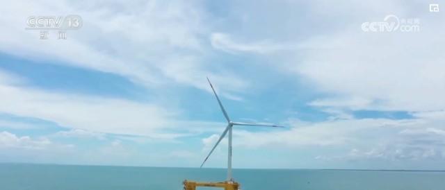 6月30日安装完成的这台18兆瓦中速全集成海上风电机组安装在热电厂。工作人员介绍,将风能等新能源和传统能源相结合,提升了能源利用效率和企业盈利能力。