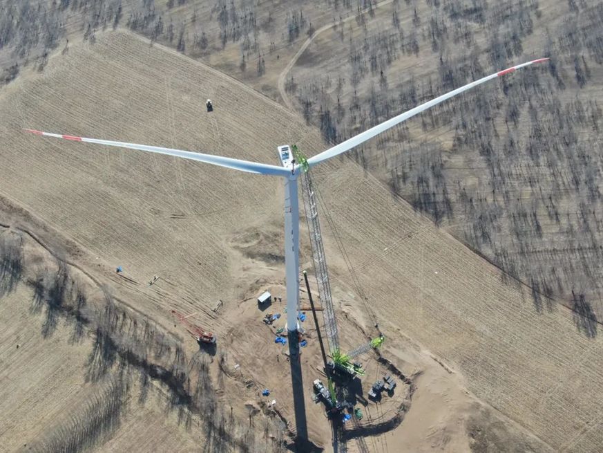 三月份以来,内蒙古通辽市238万千瓦风电基地项目高林屯风电场机械轰鸣,紧锣密鼓,风电基地项目“乘着春风”施工忙,这一惠及地方经济、生态、民生的新能源工程,正在奋力描绘通辽绿色发展新图景。