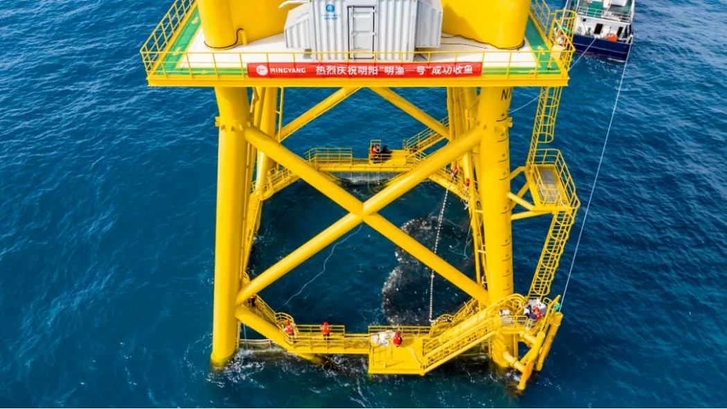 该项目还通过明阳自主研发设计的风渔一体化智能装备“明渔一号”开创性地实现了全球首次“绿电一体化直供养殖的低碳渔业”模式,为“海上风电+海洋牧场”海域、结构、电力、信息传输、运维等多方位的深度融合探索了路径。