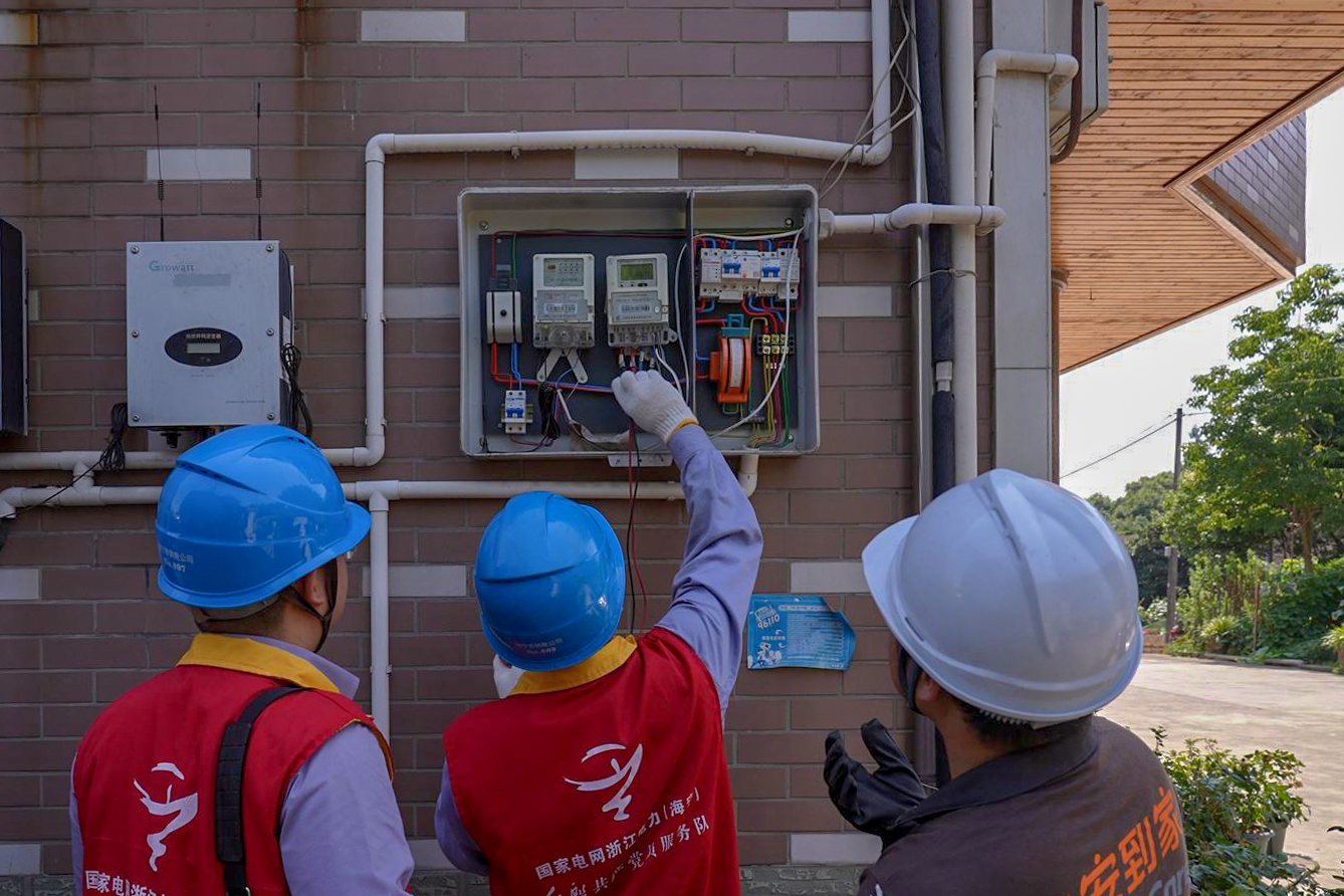 “孤儿电站”治理联盟为用户更换光伏逆变器。国网海宁市供电公司/供图