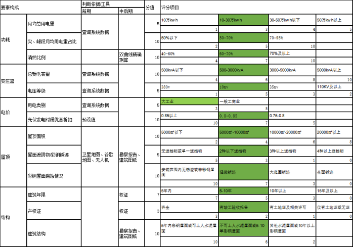 第五,结构。屋顶分布式光伏需安装在企业的房屋上,因此建筑结构需要满足新增光伏荷载的要求。对企业建筑结构的检测主要从建筑年限,勘察报告和图纸,产权证等三个维度开展。