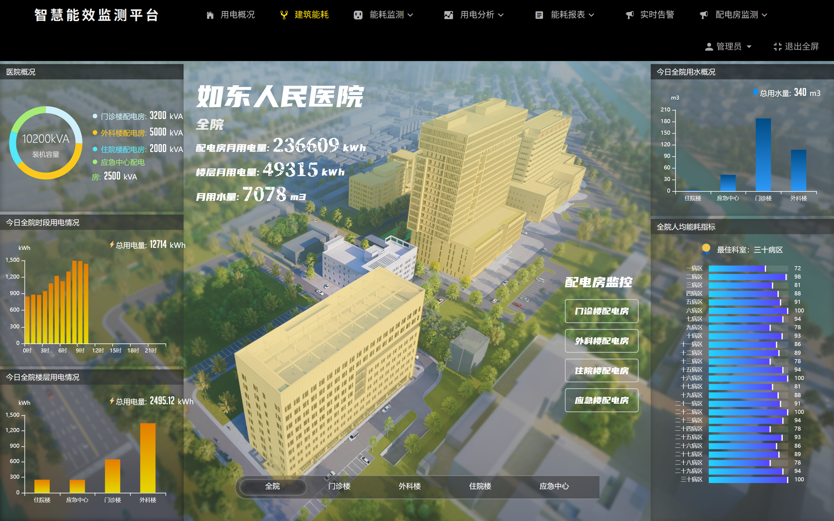 建立能源与环境物联网智能监控平台,消除安全隐患、延长设备寿命、减少能源消耗。为医院提供能源托管,开展节能管理。精细化运维团队服务管理,提高用能灵活度与稳定性,大幅提高公共基础设施综合能源利用效率、减少成本。以如东县人民医院为例,5年能源托管合同期内预计可节约电量105万千瓦时,按照0.67元/度,5年可节约电费70万元。大幅提高能源利用率、降低碳排放,5年内可减少二氧化碳排放约784.35吨。此外,采用环保材料和节能设备,减少了有害物质的使用和排放,为社会公众和机构职工创造更加健康、安全的环境。