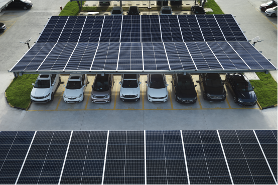 2、光伏停车棚:面积4614平方米,可容纳220辆机动车及400余辆非机动车,年发电量可达92万度。此外,基地还安装了200盏太阳能路灯,每年可节约3万度清洁电力,相当于减少碳排放17.72吨。