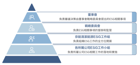 北京京能清洁能源电力股份有限公司已连续8年发布企业ESG报告,从逐渐摸索前行转变为稳步夯实ESG治理的状态。公司坚信稳健的ESG治理体系是引领公司高质量发展的重要基础。我们已将ESG战略充分融入公司整体发展战略当中,明确了董事会对于ESG的监管职责;并于公司和各所属单位建立相应的ESG治理架构,各司其职,全面落实ESG战略的推进和实施。