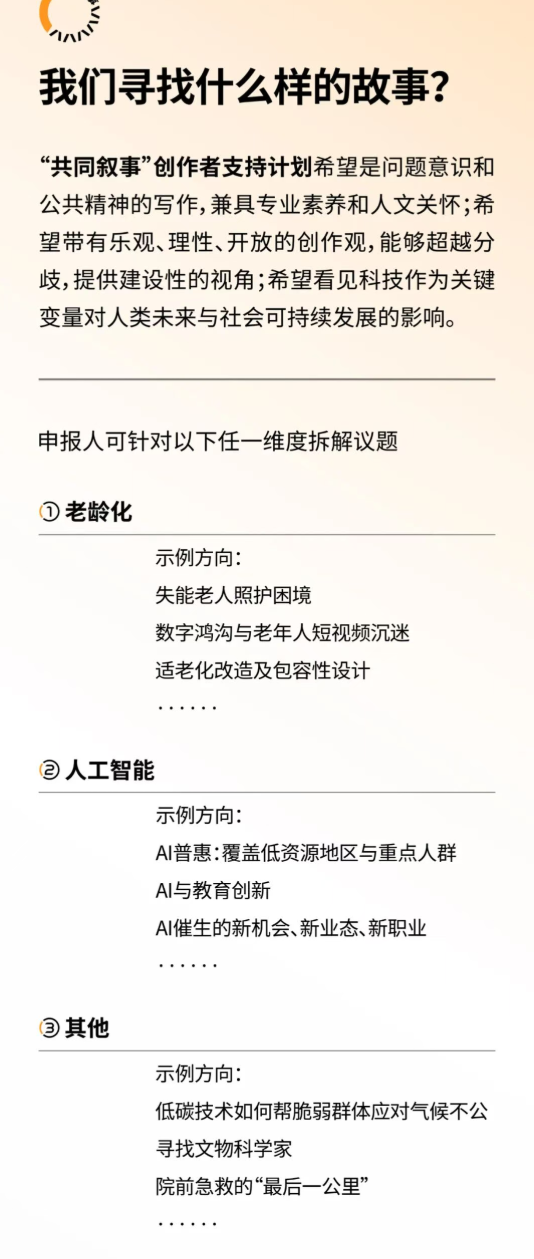 据单向街基金会消息,单向街基金会发起“共同叙事”创作者支持计划。该计划由重庆腾讯可持续发展基金会资助,单读作为战略协同伙伴参与运营。在腾讯可持续社会价值创新战略引领下,重庆腾讯可持续发展基金会于2023年注册成立,通过资助不同领域的社会价值创新或科技公益项目,促进社会可持续发展。