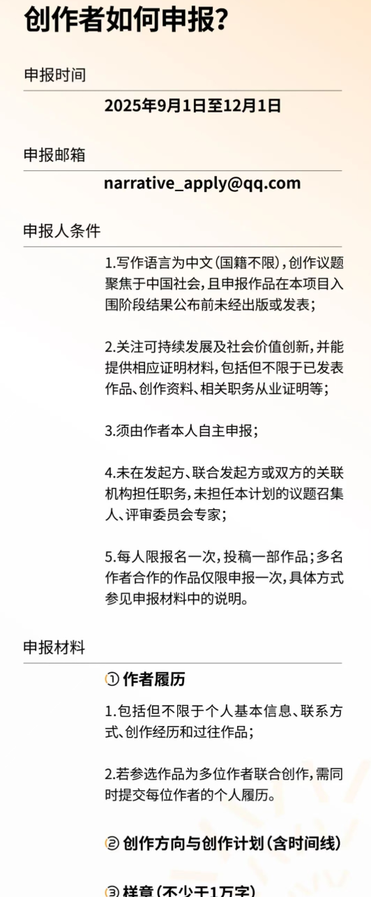 单向街基金会表示,无论是气候危机的加剧、地缘政治的深刻变化,还是人工智能的迭代,都标志着我们的时代正在经历重要的转变。虽然不确定性愈加明显,但历史也正在我们的日常中展开,有许多正在发生、已经发生的事,值得创作者去关注和记录。这些“现实”也在激励创作者,去书写更具实感与温度的非虚构作品,去感知眼前这个纷繁复杂的世界。单向街基金会希望通过这一计划,汇聚多样的个体经验和视角,共同构建一个开放而多元的“共同叙事”。在初步的构想里,每个人的独特书写,最终将与其他作品一起,共同描绘出更广阔的社会图景。
