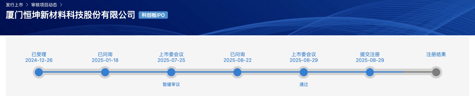 8月29日,两家科创板IPO一同上会,但企业因上会结果不同导致IPO进程走向分岔口,值得一提的是,两家企业均由中信建投保荐。据上会审议公告显示,IPO恒坤新材二次审议顺利通过,现场无主要问询问题,过会同天,恒坤新材便迅速提交注册。