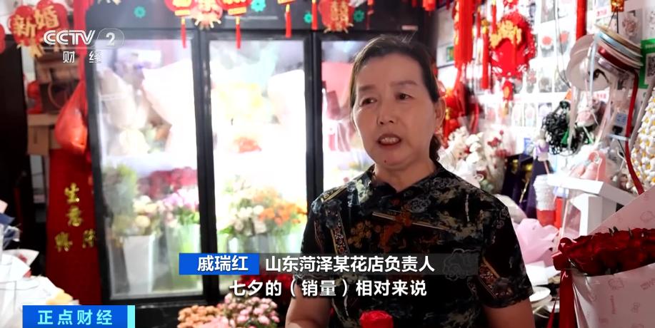 山东菏泽某花店负责人 戚瑞红:“七夕”的销量相对来说是比较高的,大约一天能达到100束。