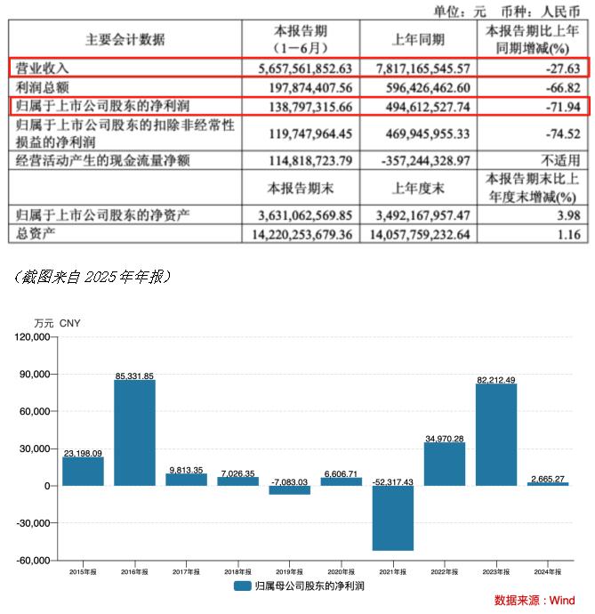 然而,2025年半年报的披露,将这家老牌中药企业的经营困境清晰地呈现在公众面前。数据显示,太极集团正遭遇成立以来前所未有的“滑铁卢”,上半年营业收入同比下滑27.63%,盈利能力的恶化尤为明显——归母净利润同比下降71.94%。此外,公司还面临明星大单品销售疲软、银行账户遭冻结的资金压力。