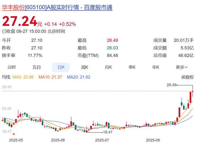 不过,今年来华丰股份在二级市场表现不俗,截至8月27日收盘,公司股价报27.24元,年内涨超84%。