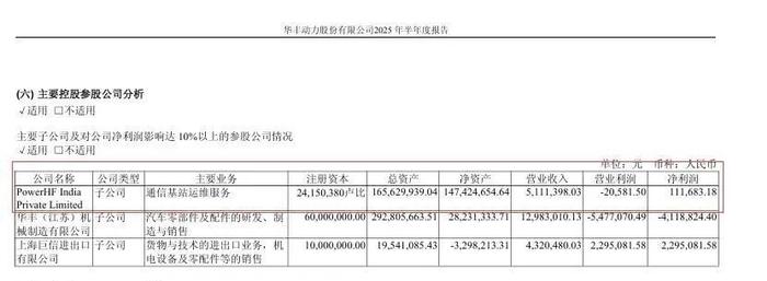 半年报显示,受印度重要客户战略调整以及印度签证政策变化影响,公司员工无法前往实地开展业务交流与拓展。这导致华丰股份印度子公司运维收入和利润在2025年上半年同比减少。