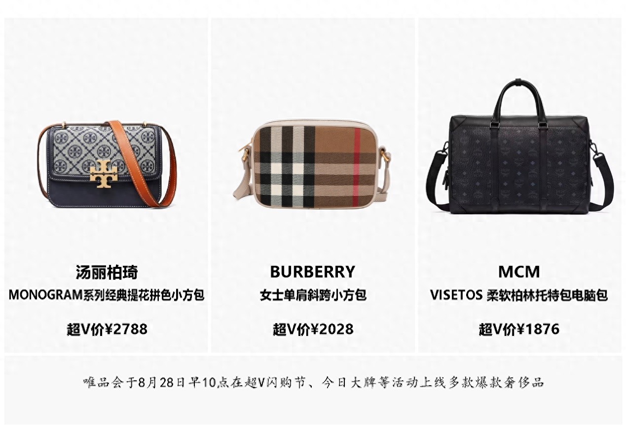事实上,借助七夕节前奢侈品消费高潮,电商平台们也在向折扣奢侈品发力。据了解,特卖电商唯品会在七夕前夕推出多场奢侈品特卖活动,8月28日,其在“超V闪购节”、“今日大牌”等栏目中上线多个爆款奢侈品:以Burberry 单肩小方包为例,当天超V价格为2028元,相比日常的折扣价还要便宜上千元。而汤丽柏琦的一款经典小方包,超V价格为2788元,价格几乎已至平台历史低点。