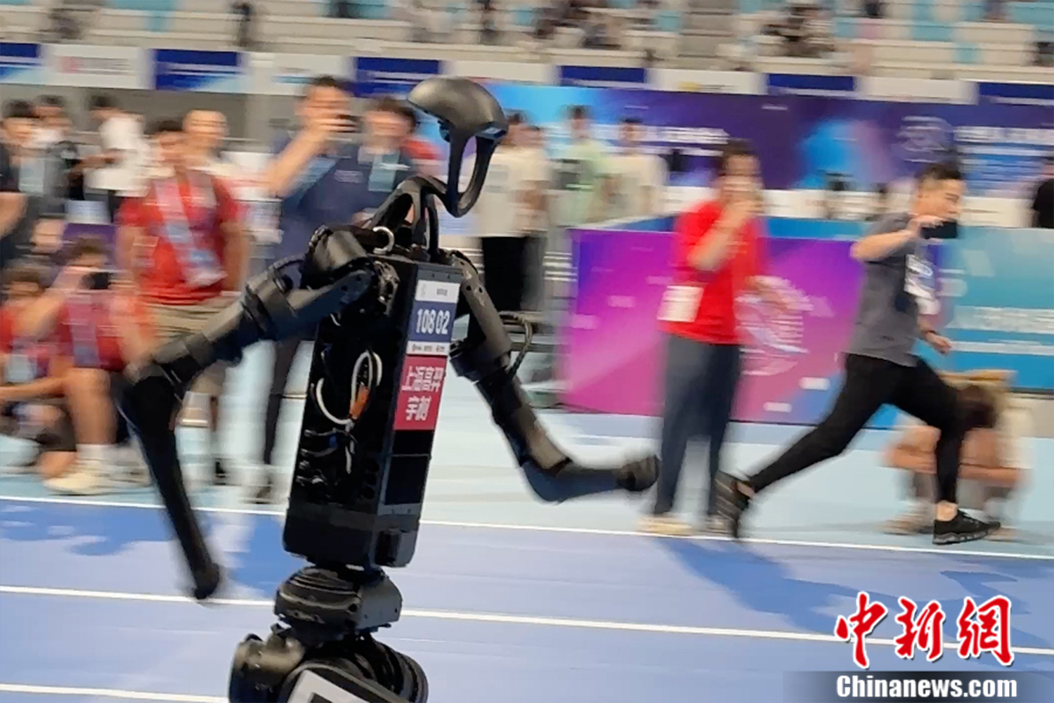奔跑中的人形机器人。记者 吴家驹 摄