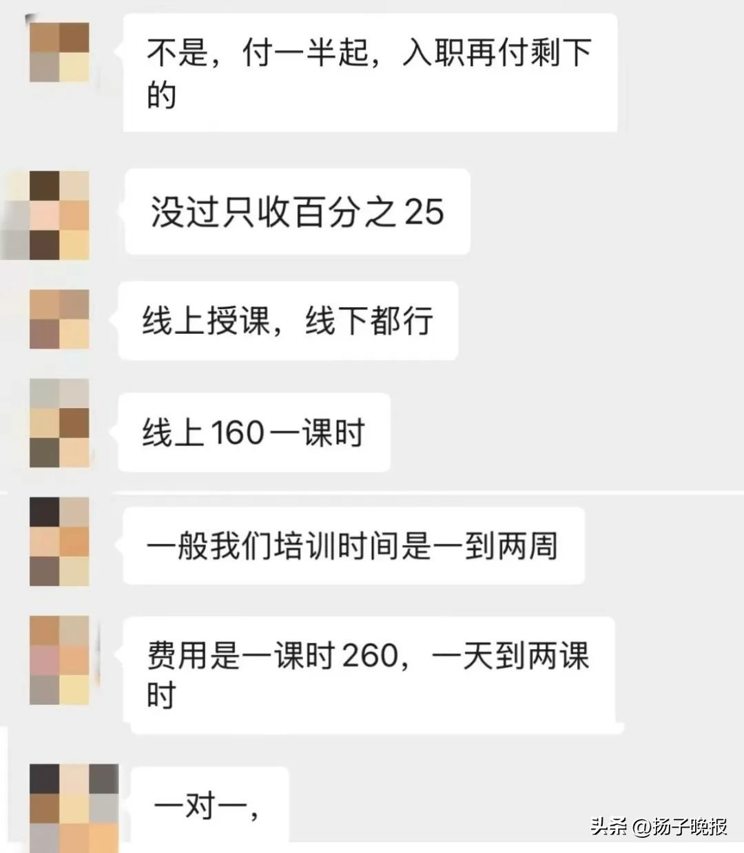 随后,该商家将沟通由社交平台引入微信。在微信上,一位自称“刘老师”的培训人员提供了一组数据:上一批26名学员中,有17名成功入职,通过率在65%左右。
