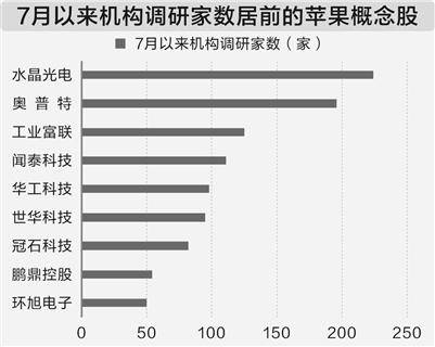 从机构关注度来看,7月以来有31只概念股获得机构调研,水晶光电、奥普特、工业富联、闻泰科技的关注度较高,调研机构均在100家以上。