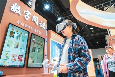在内蒙古自治区呼和浩特市举行的2025北疆书展上,读者体验数字阅读。