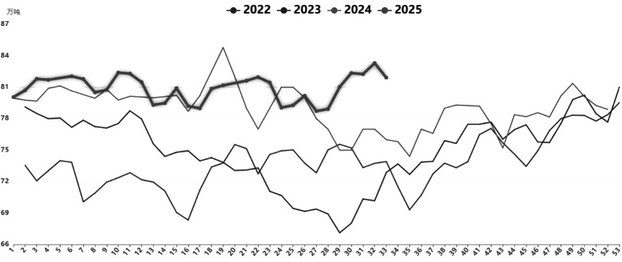 图为国内烧碱周度产量