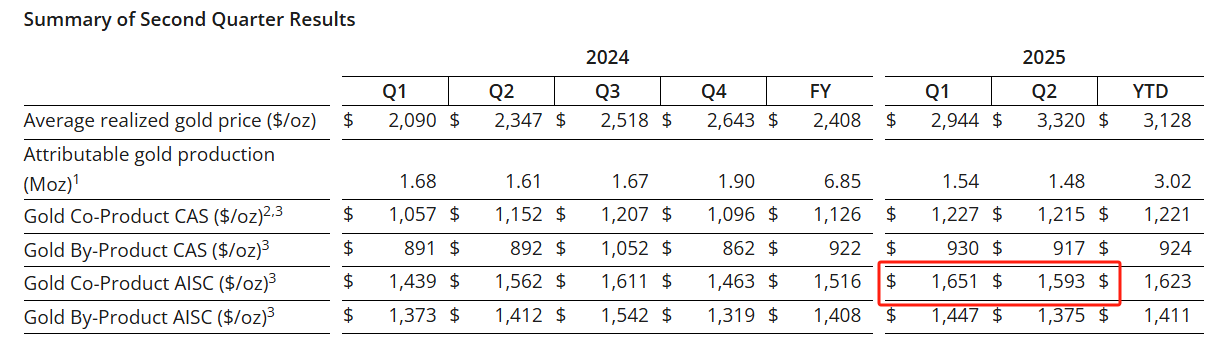 2023年时,纽蒙特斥资150亿美元收购了纽克雷斯特矿业公司(Newcrest Mining Limited),令其矿山组合扩大至约20个,叠加纽蒙特进入铜矿业务,推动公司整体成本上升。