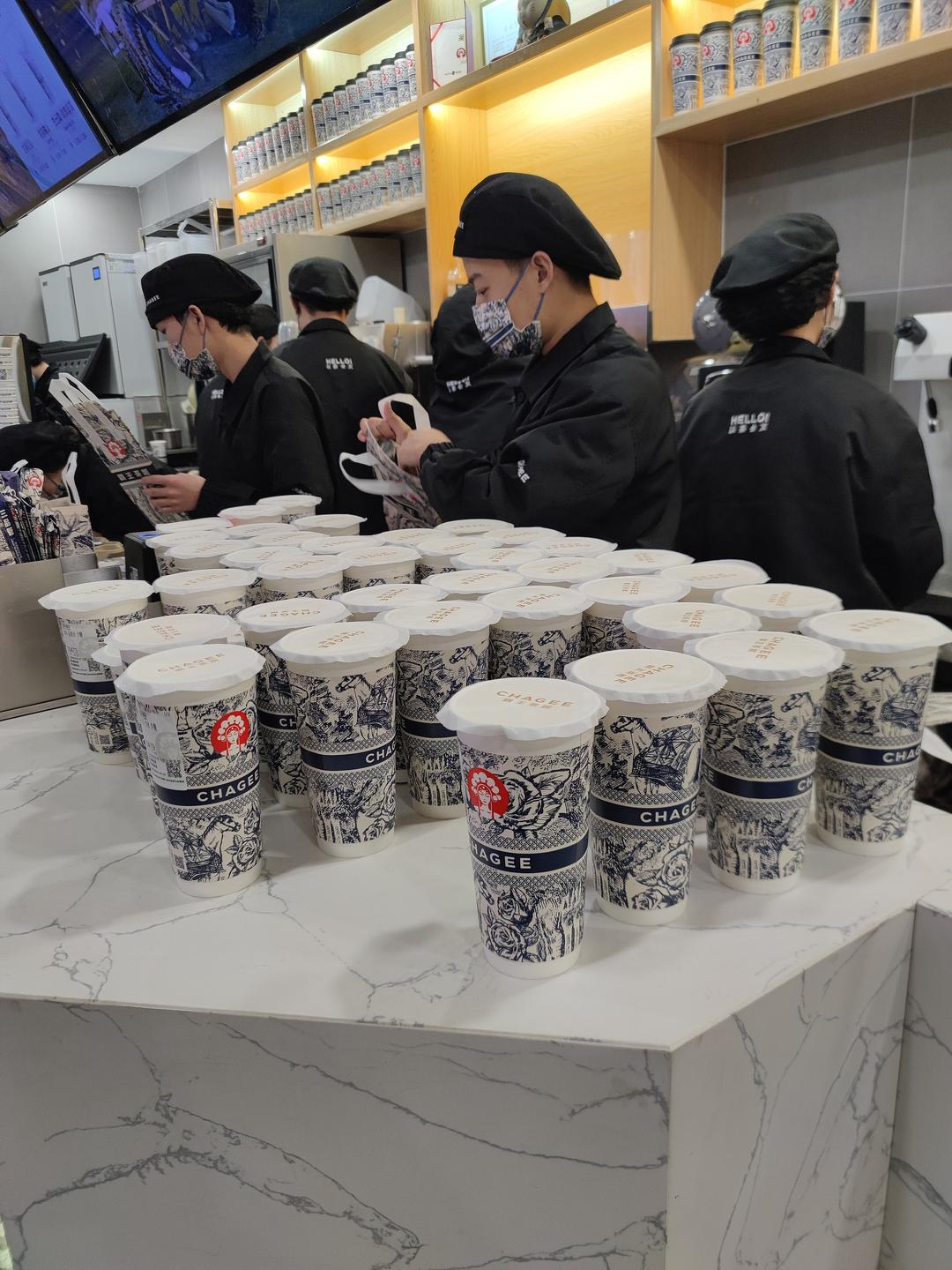 2023年11月17日,云南昆明,霸王茶姬六周年庆,满桌的伯牙绝弦。图据视觉中国