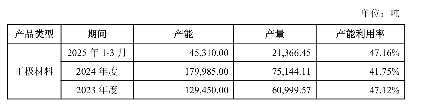 换得的是产能利用率的持续走低。2023年公司产能利用率仅47%,2024年进一步降至42%,2025年一季度则回升至47.16%,这意味着,超过一半的产线处于闲置状态,固定成本摊销压力巨大,业绩由此由盈转亏。