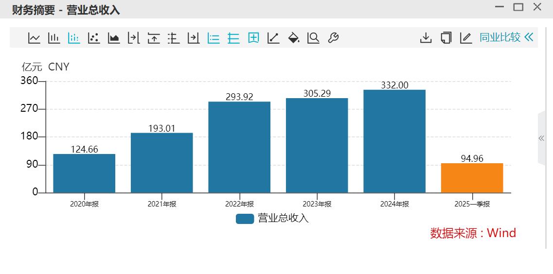 格林美近五年的财报数据显示,2020-2024 年,公司营收从124.66亿元增至332.00亿元,5 年增幅达1.66 倍;总资产同步从297.08亿元扩至667.97亿元,涨幅124.85%。