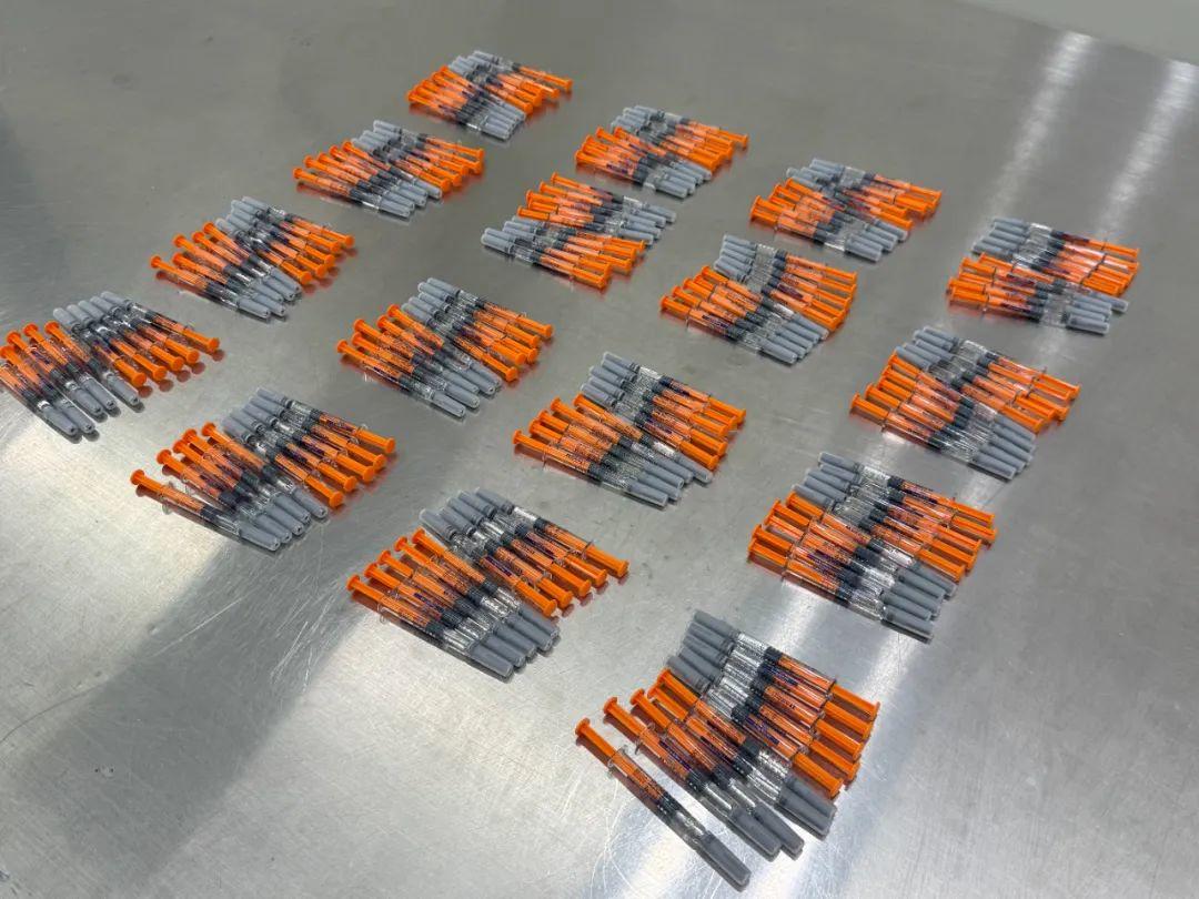 近日,皇岗海关查获进境旅客人身藏匿减肥针剂160支。