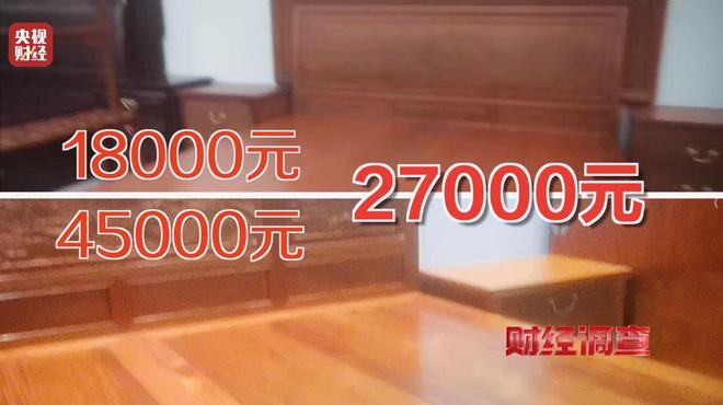 在东阳喜木家具展厅,同一展厅同一张床,不同销售说法不同:前一位称老挝料,另一位说是缅甸花梨,报价相差了3000元。