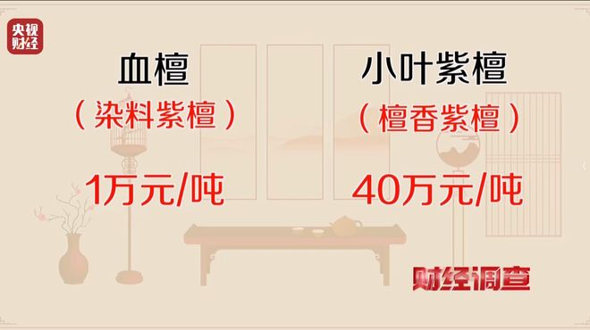 血檀不属国标红木,原木每吨约1万元;小叶紫檀是名贵国标红木,原木每吨高达40万元。