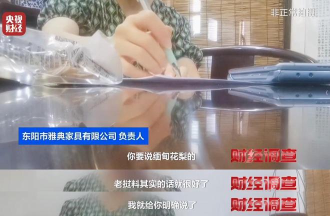 杨家匠红木家具的负责人,头一天还跟记者信誓旦旦保证自己绝对诚信经营,第二天却向记者承认他家的缅花家具并非真正的缅甸料。