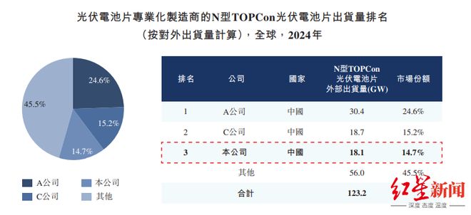 根据弗若斯特沙利文,于2024年按出货量计,英发睿能是全球第三大N型TOPCon片专业化制造商,全球市场份额达14.7%;于2025年8月,成为全球首个商业化N型xBC电池片的光伏电池片专业化制造商。
