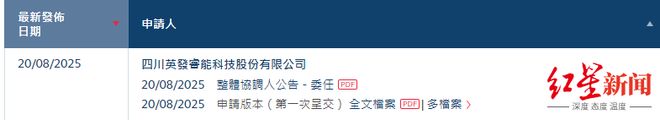 据港交所披露,8月20日,四川英发睿能科技股份有限公司(简称“英发睿能”)向港交所主板提交上市申请书,联席保荐人为中信建投国际和华泰国际。