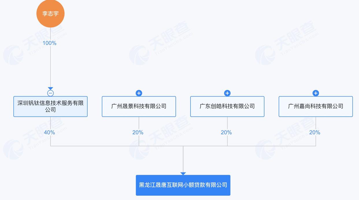 如今,晟唐互联网小贷的大股东仍为深圳钒钛信息技术服务有限公司,只不过法定代表人已变更为李志宇。