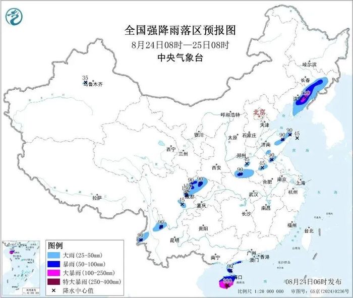 中央气象台8月24日继续发布台风橙色预警、暴雨黄色预警。今年第13号台风“剑鱼”于24日凌晨加强为台风级,预计将于24日下午至傍晚在海南陵水到乐东一带沿海登陆(台风级或强台风级),也有可能经过海南岛南部近岸海面,然后逐渐趋向越南中北部沿海。预计24日8时至25日8时,海南岛、广东西南部沿海、广西南部沿海、云南西北部、四川盆地西部和北部、河南中南部、安徽北部、江苏北部、山东中部、辽宁东部、吉林东部以及新疆沿天山等地的部分地区有大到暴雨,其中,海南岛中南部、四川盆地西部、辽宁东北部、吉林东南部等地的部分地区有大暴雨,海南岛东南部等地局地特大暴雨。交通运输部启动台风三级防御响应、强降雨三级防御响应。