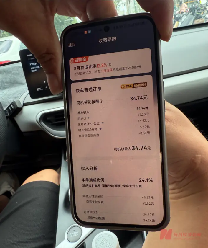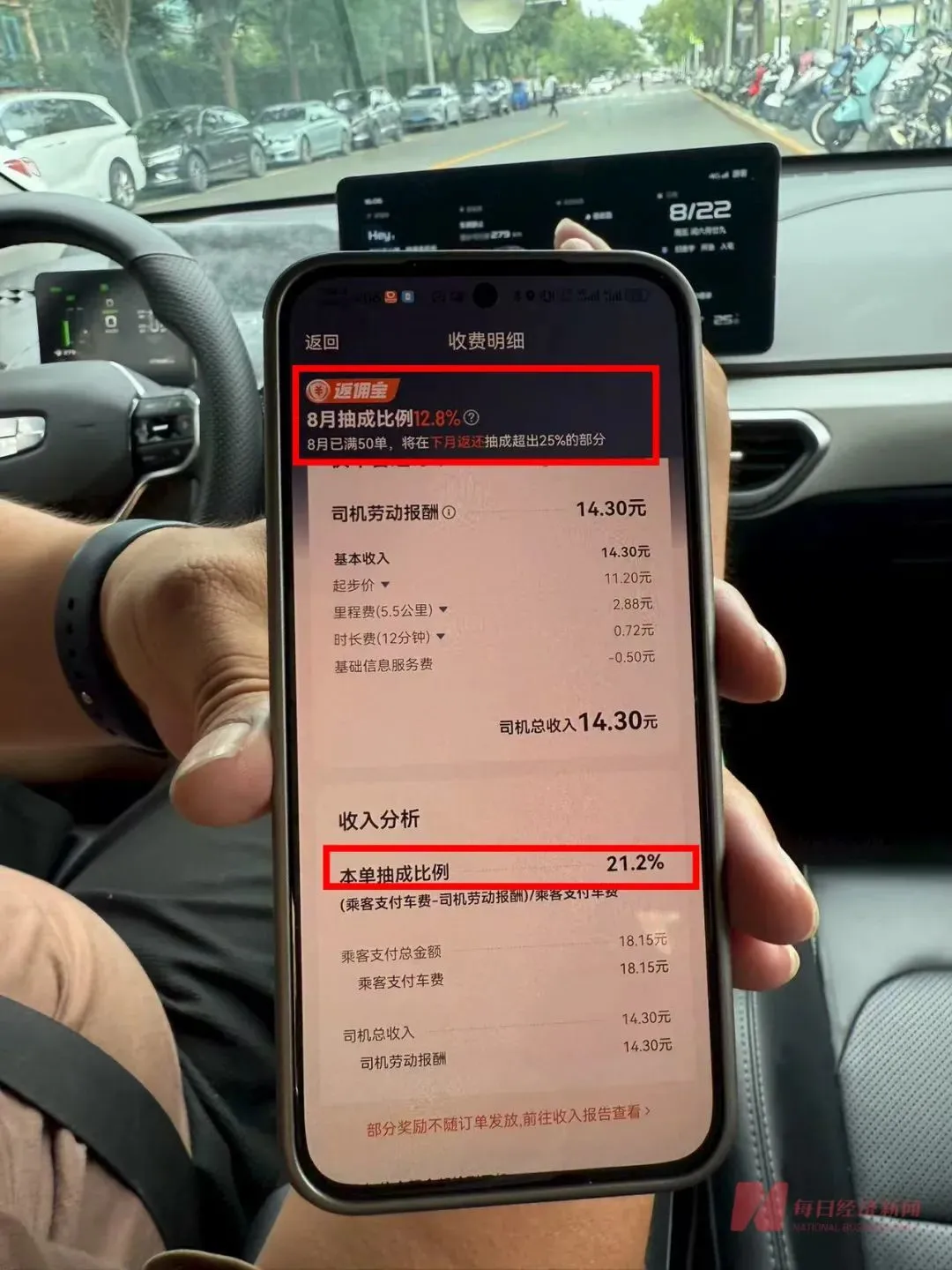 8月22日,《每日经济新闻》记者通过打车体验与采访网约车司机发现,当前“普通快车”订单单笔抽成约为21%~24%,但也有部分订单因司机当月跑满一定单数会在下月返还部分佣金,还有乘客使用大额优惠券等原因会对司机免佣,使得月平均抽成比例进一步下降。