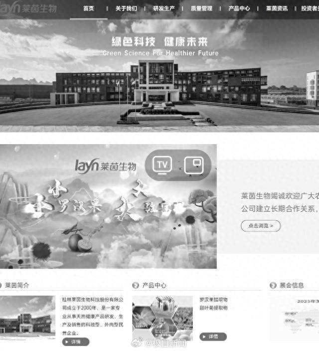 21日晚,记者注意到,该公司官网首页已变黑白色。记者多次致电莱茵生物,未获回应。记者致电桂林市临桂区相关部门,工作人员称,以官方通报为准。