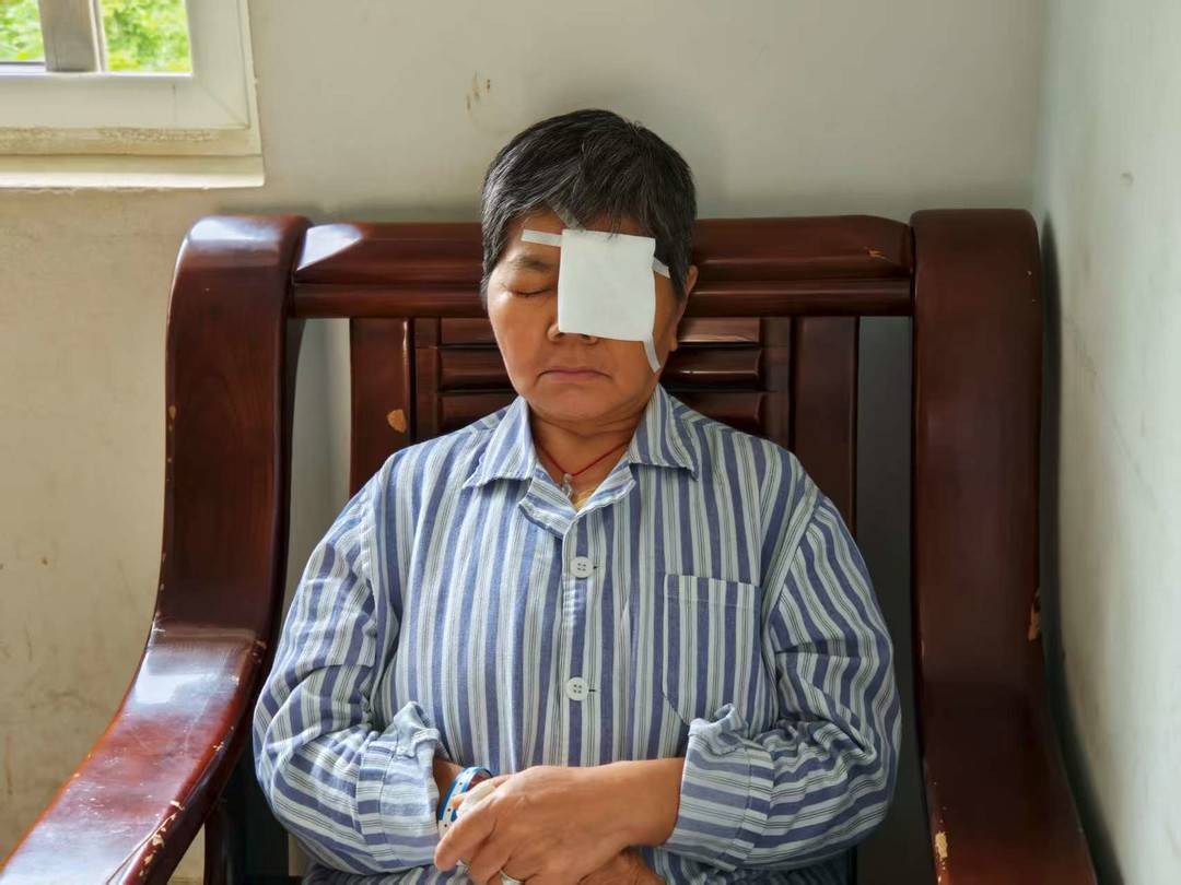 阿强的妈妈左眼失明后做了手术(受访者供图)
