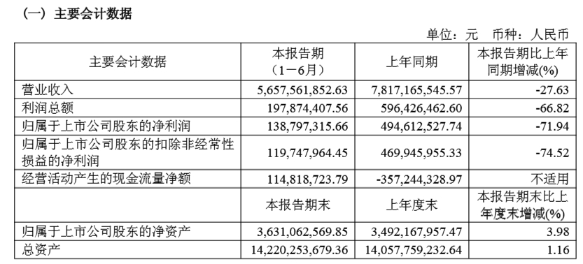 2025年上半年,太极集团实现归属于上市公司股东的净利润1.39亿元,同比下降71.94%。对于业绩波动,太极集团解释称,主要受相关政策以及部分产品社会库存持续消化等因素影响,营业收入较上年同期减少,导致归属于上市公司股东的净利润下降。