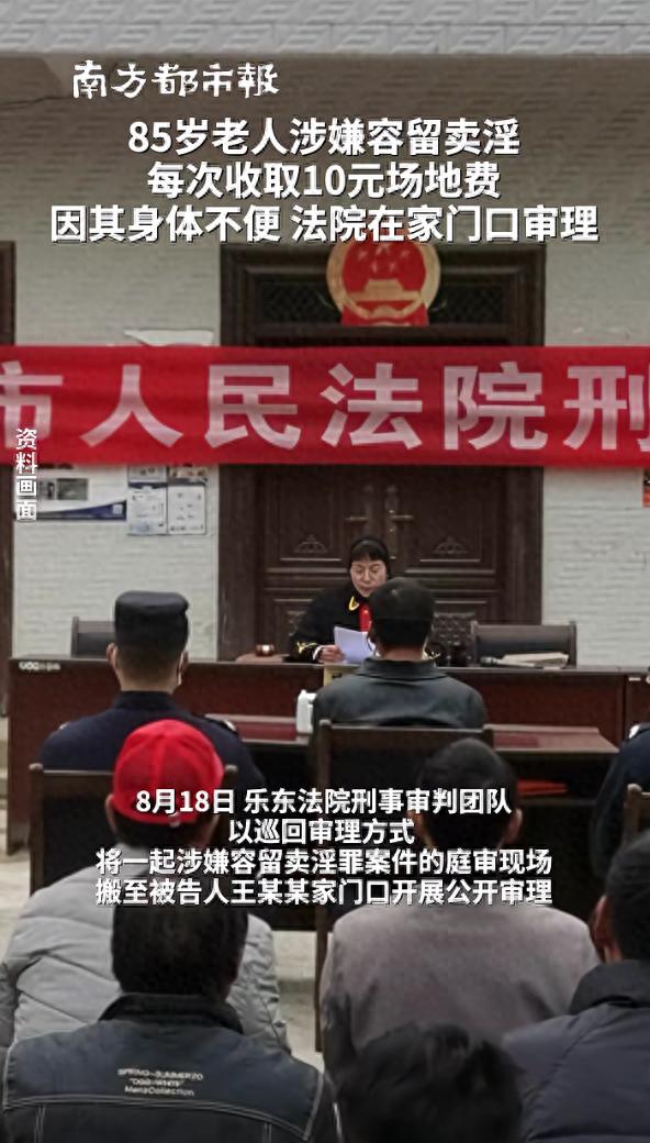 公诉机关指控,2024年1月期间,失足妇女陈某某、韦某某,在被告人王某某提供的房屋内从事卖淫活动,并从中向王某某支付10元作为场地使用费。案件受理后,承办法官了解到被告人王某某已85岁高龄,且身患疾病导致行动不便,到法院参加庭审存在实际困难,决定将庭审现场设置在王某某家门口。