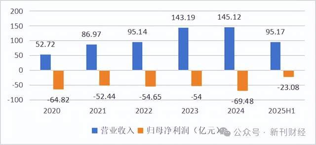 北汽蓝谷近年来营业收入持续增长,却未能改变连续亏损的状态。财务数据显示,公司营业收入从2020年的64.82亿元增长至2024年的145.12亿元,年复合增长率达28.81%,2025年上半年实现营收95.17亿元,更是同比大幅增长154.38%。但归母净利润自2020年起连续五年为负,分别录得-64.82亿元、-52.44亿元、-54.65亿元、-54.00亿元和-69.48亿元,2025上半年仍亏损23.08亿元,盈利能力尚未得到实质性改善。