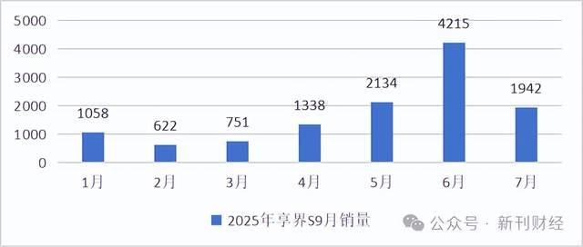 北汽蓝谷与外部技术联合打造的品牌享界,市场表现亦未达预期。享界S9自2024年8月上市以来,10–12月销量分别为758辆、1,058辆和1,192辆。2025年2月销量降至622辆,环比下滑41.21%;6月虽回升至4,215辆,但7月又回落至1,942辆。与同为“界字辈”的问界相比,享界品牌影响力逊色不少。