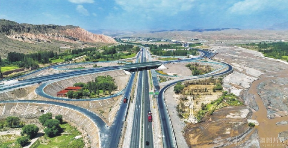 试运行中的G315线托帕—吐尔尕特口岸公路项目托帕立交路段(8月29日摄)。该项目起点位于吐伊高速(G3013)托帕立交,终点位于中国与吉尔吉斯斯坦交界的国门处,全长111.945公里。目前,工程已基本完工,预计9月底通车。谷成玲 摄