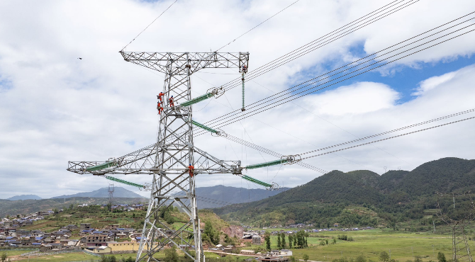 2025年6月30日,攀西电网优化改造工程建成投运。图为党员突击队在进行附件安装和引流线连接工作。安伟/摄