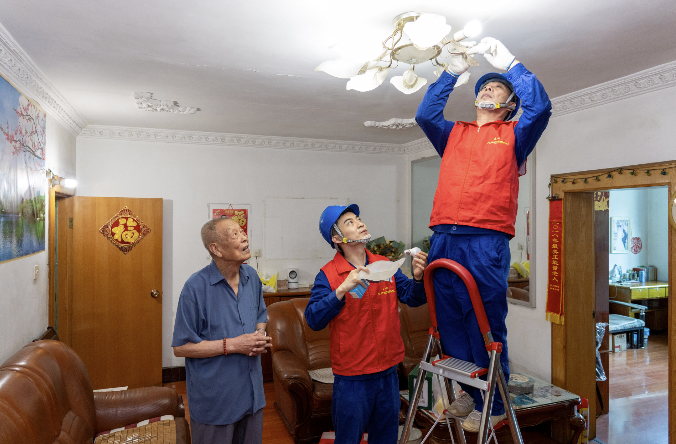国网四川电力(绵阳)连心桥党员服务队来到绵阳市涪城区绵兴社区和绵州社区帮助在家高龄老人更换故障灯具,排除用电安全隐患。田海/摄