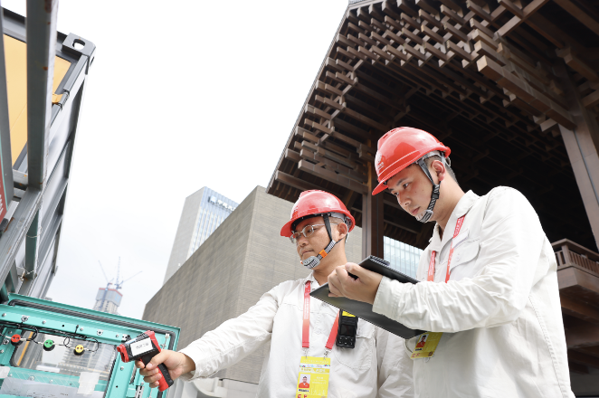 国网四川电力(天府新区)连心桥党员服务队队员对开幕式场地设备进行巡视检查。陈翔/摄