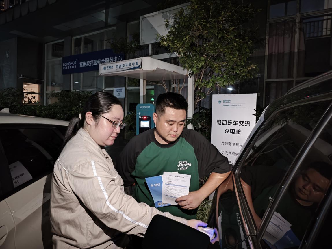 国网重庆市北供电公司员工在万和社区为用户讲解夜间电动车分时电价政策。钟雪/摄