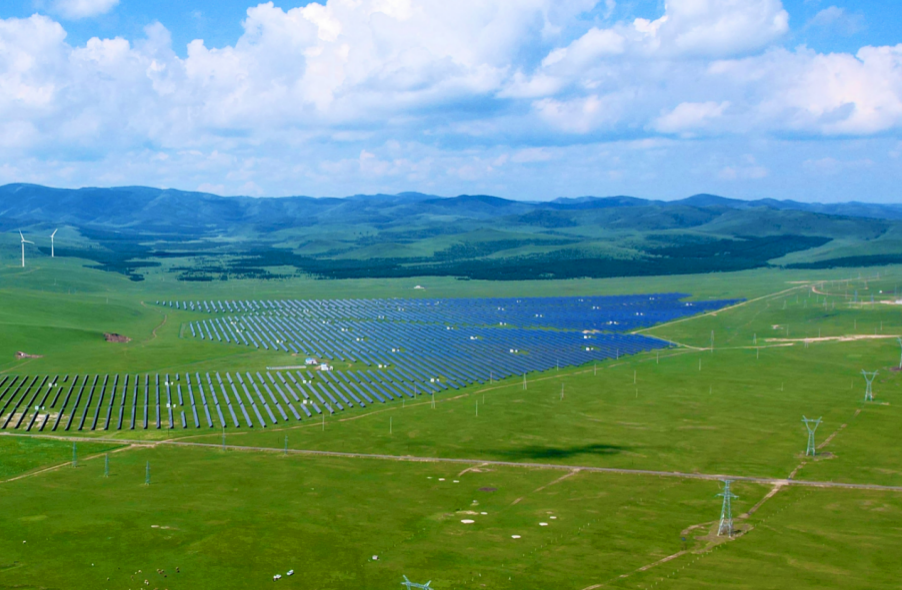 内蒙古通辽市扎鲁特旗光伏风电基地,国网蒙东电力通过电网通道将新能源向外输送。何塔拉/摄